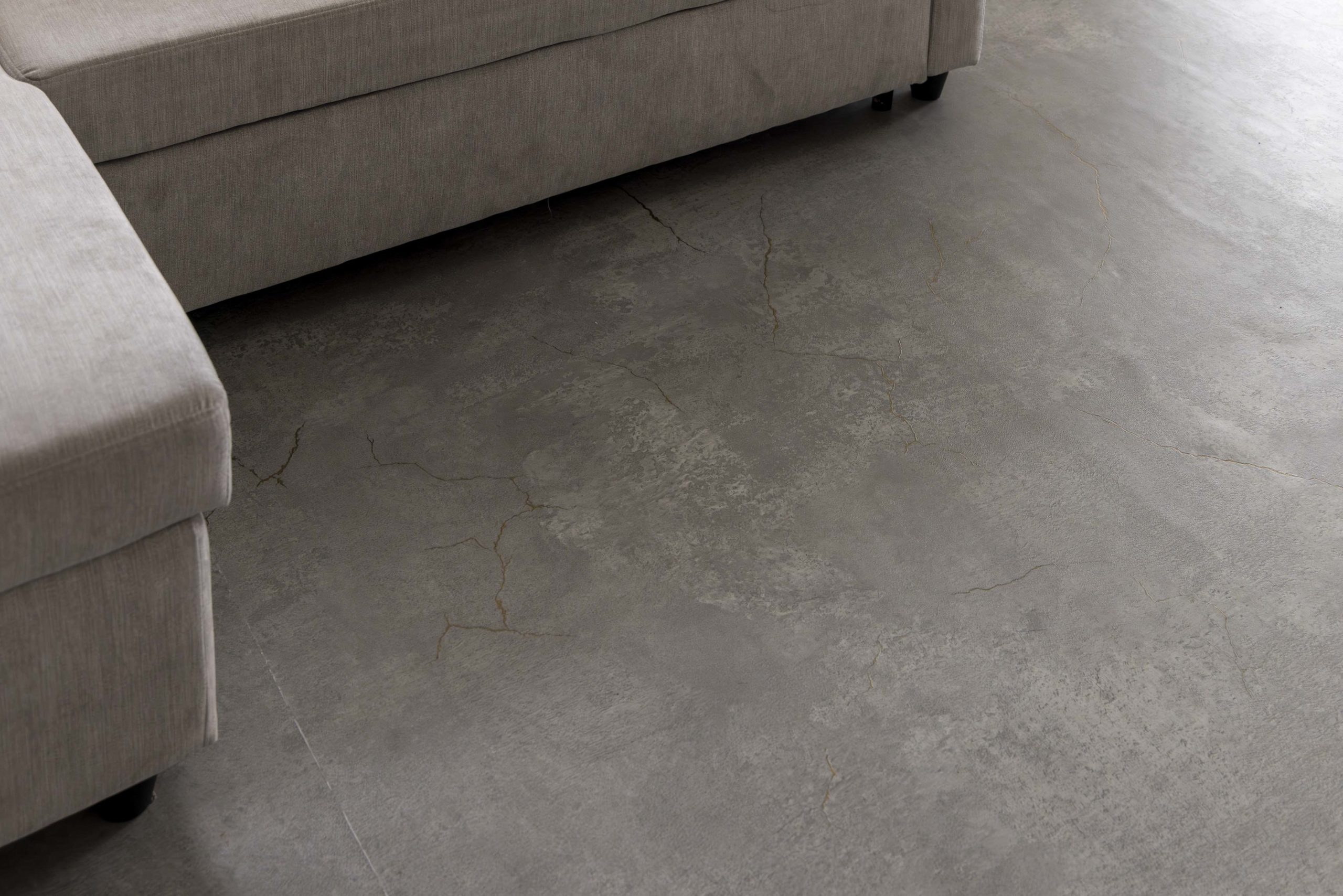 さらに、シンプルで洗練されたコンクリート調のフロアタイルは、ホテルライクなデザインがお好みの旦那様のご希望で取り入れました。ゴールドのクラックが入っていて見た目のポイントになっているだけでなく、滑りにくいためワンちゃんにも優しい仕様になっているのも魅力の一つです。